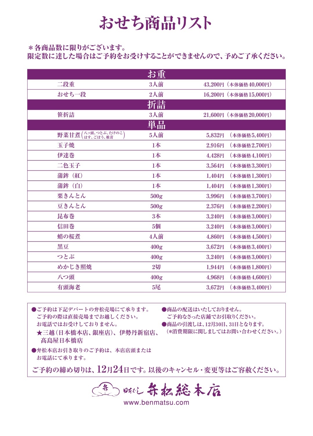 ●ご予約受付は、「弁松公式グッズストア」のみとなります。本店・デパート店頭や